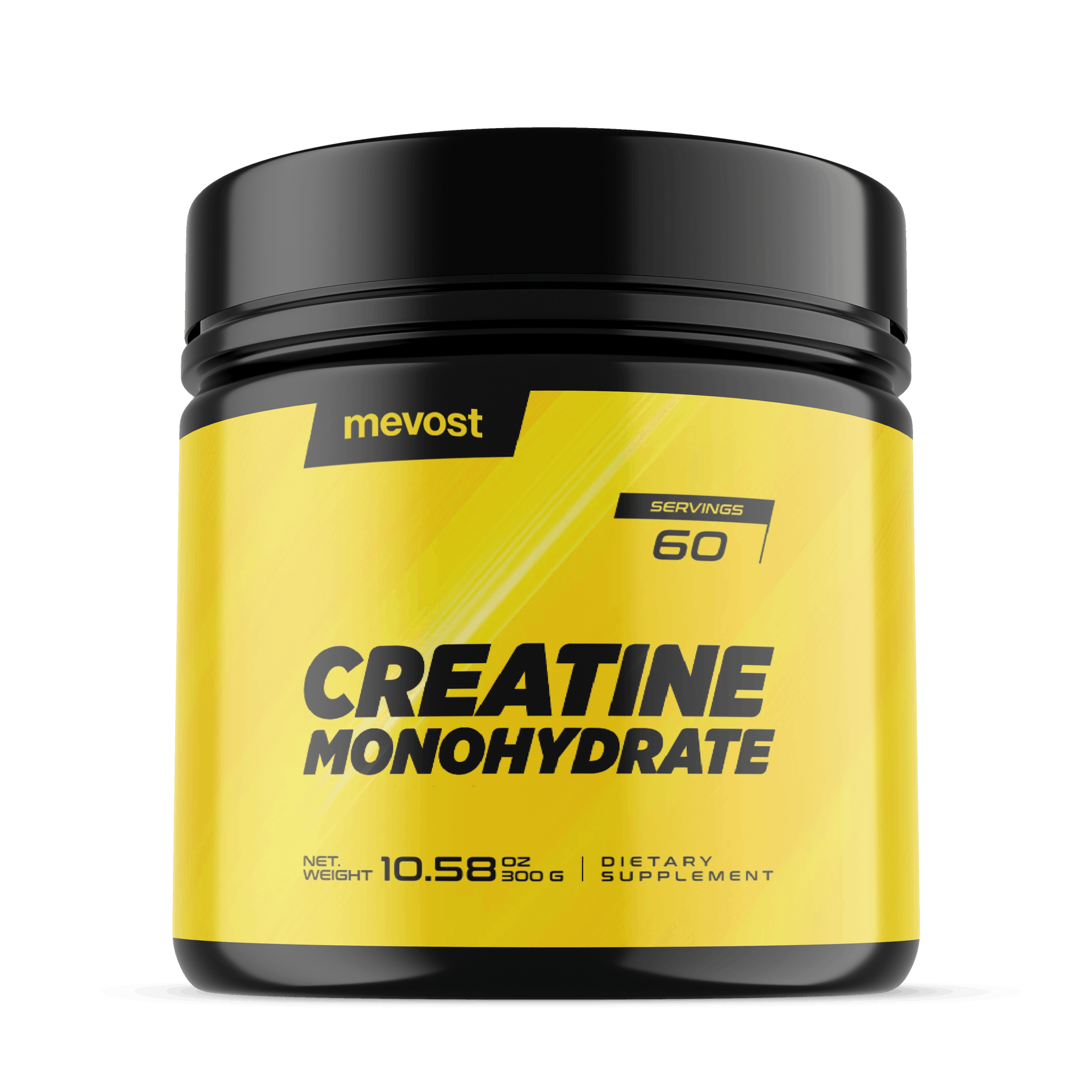 Take 1 scoop of Mevost creatine monohydrate daily to replace what your body uses every day. Creatine can be used at any time of day. Mevost creatine monohydrate has 60, 5g servings per bottle.